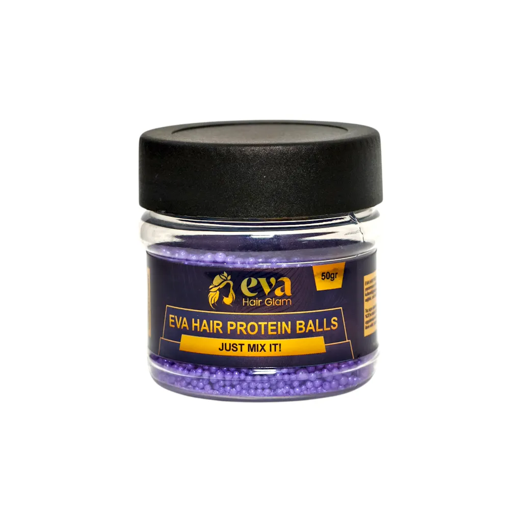 No more dull, weak hair – experience the magic of professional repair and long-lasting smoothness with Eva Hair Glam Purple Protein Balls!